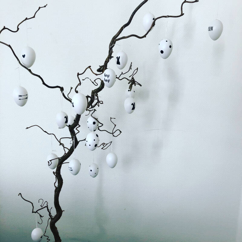 Ik was al eventjes op zoek naar zwart-witte paaseieren. Op instagram vond ik @casacreahandmade. Zij verkoopt stickers om paaseieren te pimpen. Ik bestelde een velletje en ging aan de slag.